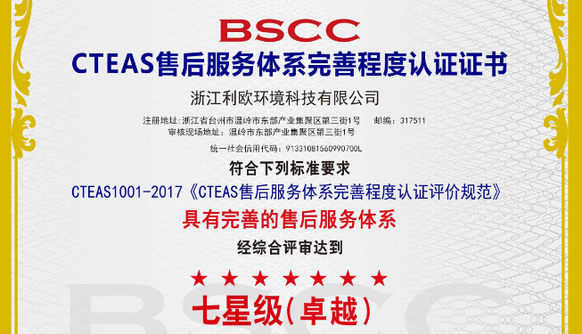 經(jīng)全國商品售后服務(wù)評價達標(biāo)認證評審委員會和北京五洲天宇認證中心評審,浙江利歐壞境科技有限公司喜獲CTEAS售后服務(wù)體系完善程度認證證書,售后服務(wù)認證體系在獲得國家標(biāo)準(zhǔn)“五星級”認證的基礎(chǔ)上,進一步升級為“七星級(卓越)”,為目前最高的售后服認證等級。七星級(卓越)售后服務(wù)體系認證證書的獲評,意味著利...