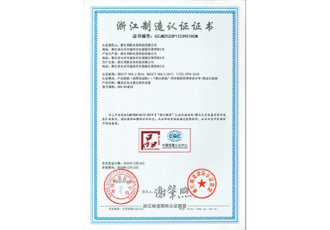 熱烈祝賀浙江利歐水務(wù)科技有限公司產(chǎn)品獲得"浙江制造"認證證書!